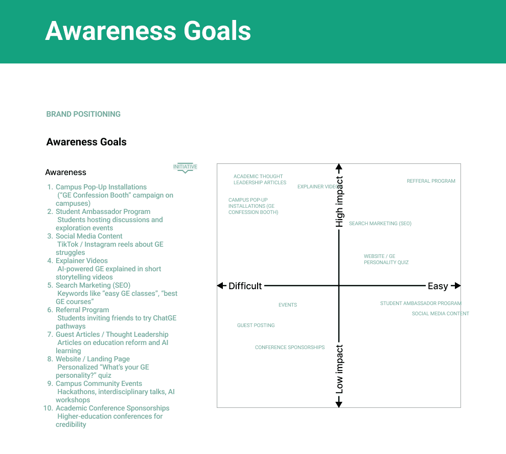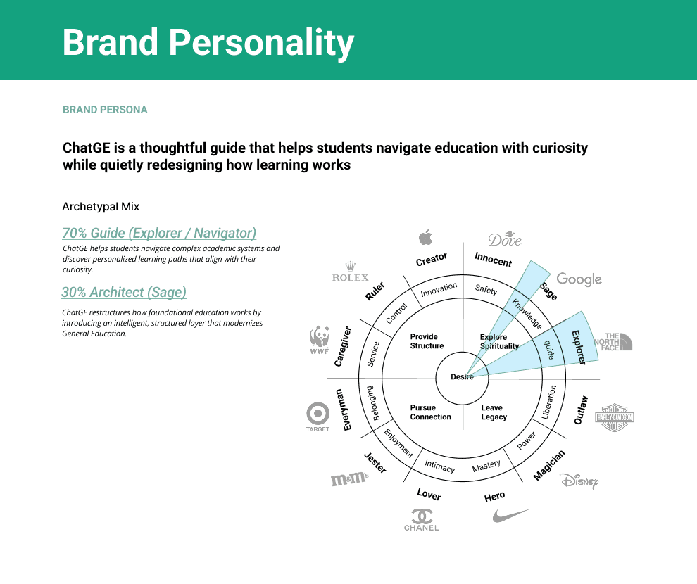 The result is a strategic concept that positions ChatGE as a bridge between curiosity and credential.