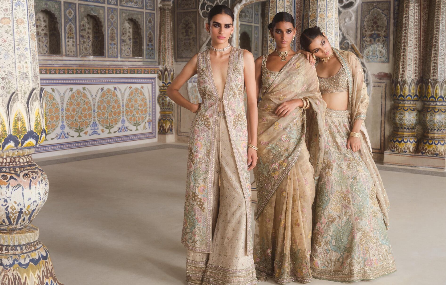 The bridal lehenga is treated like a once-in-a-lifetime artifact